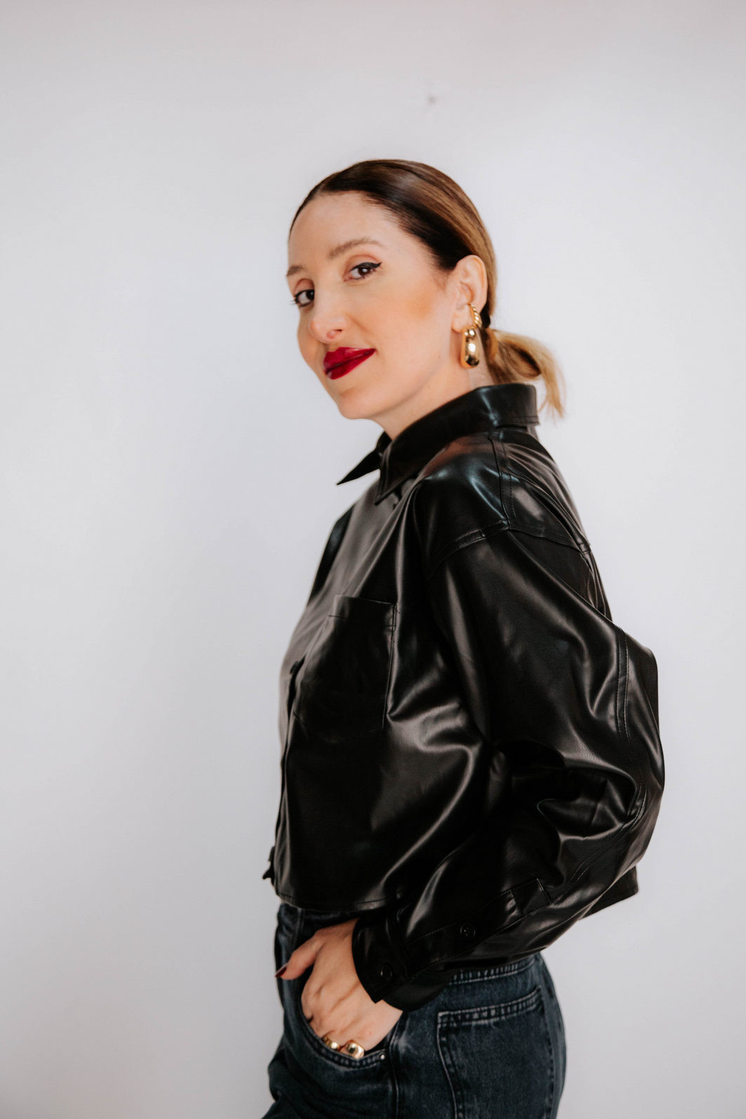 Apresentamos a nossa Camisa Cropped PU Agnes, uma peça de vestuário que reflete a essência da sofisticação e do estilo. Esta Camisa Cropped única combina a suavidade do PU com um design clássico e detalhes elegantes, tornando-a a escolha perfeita para mulheres que buscam um visual refinado.